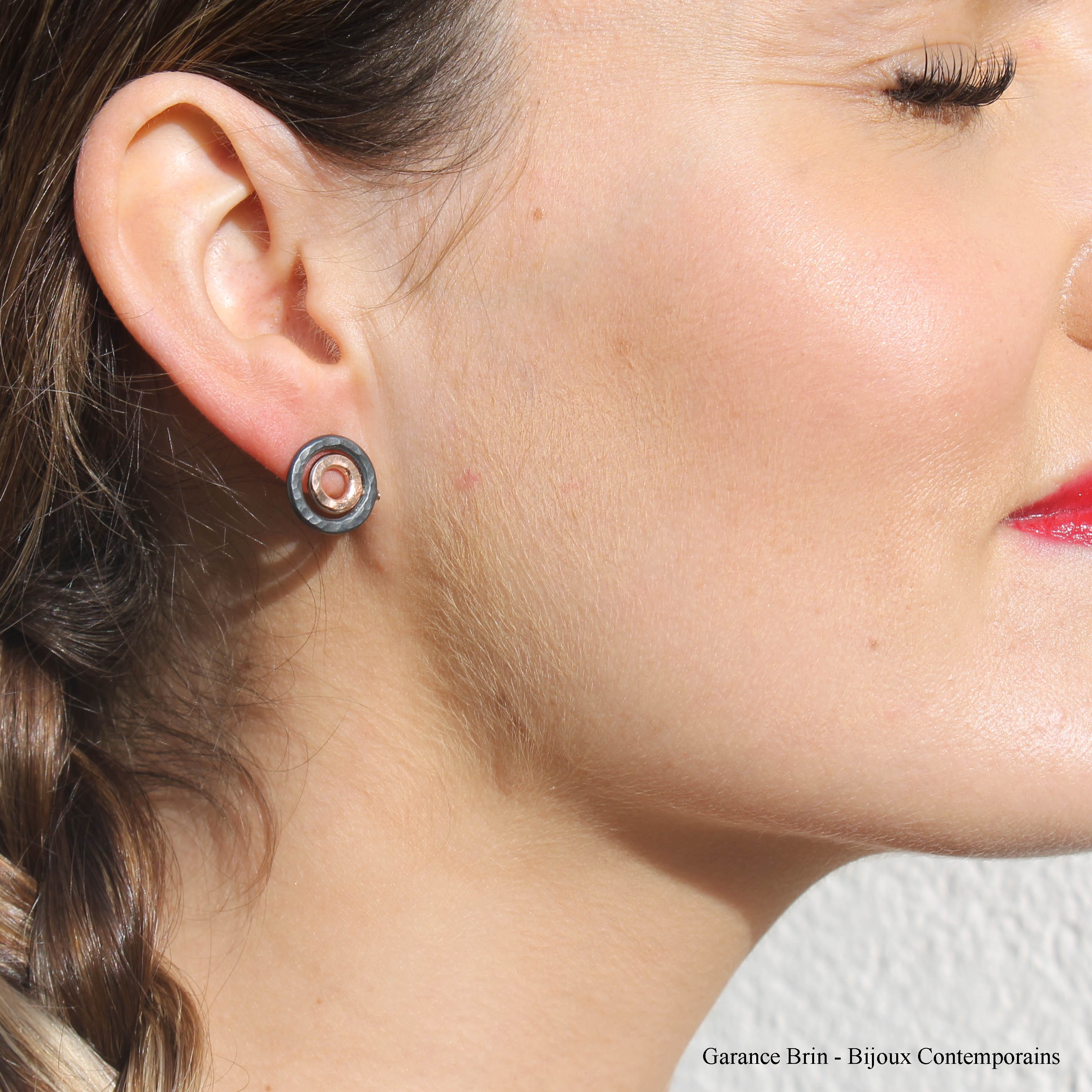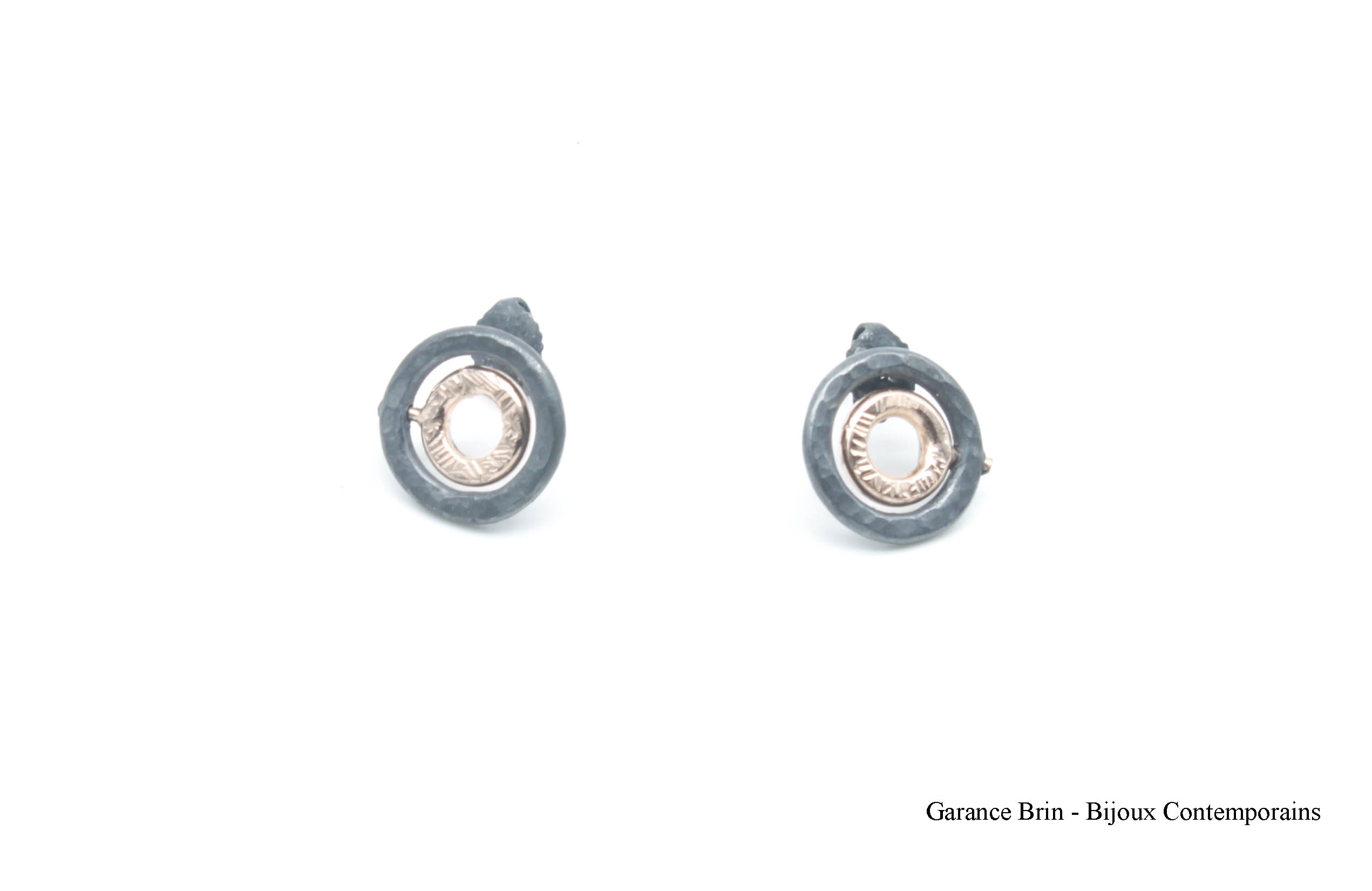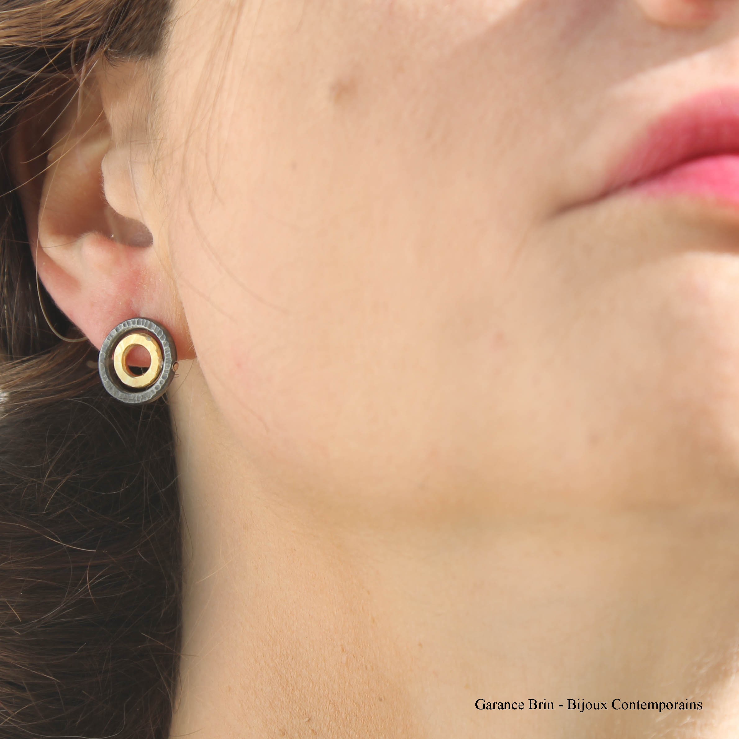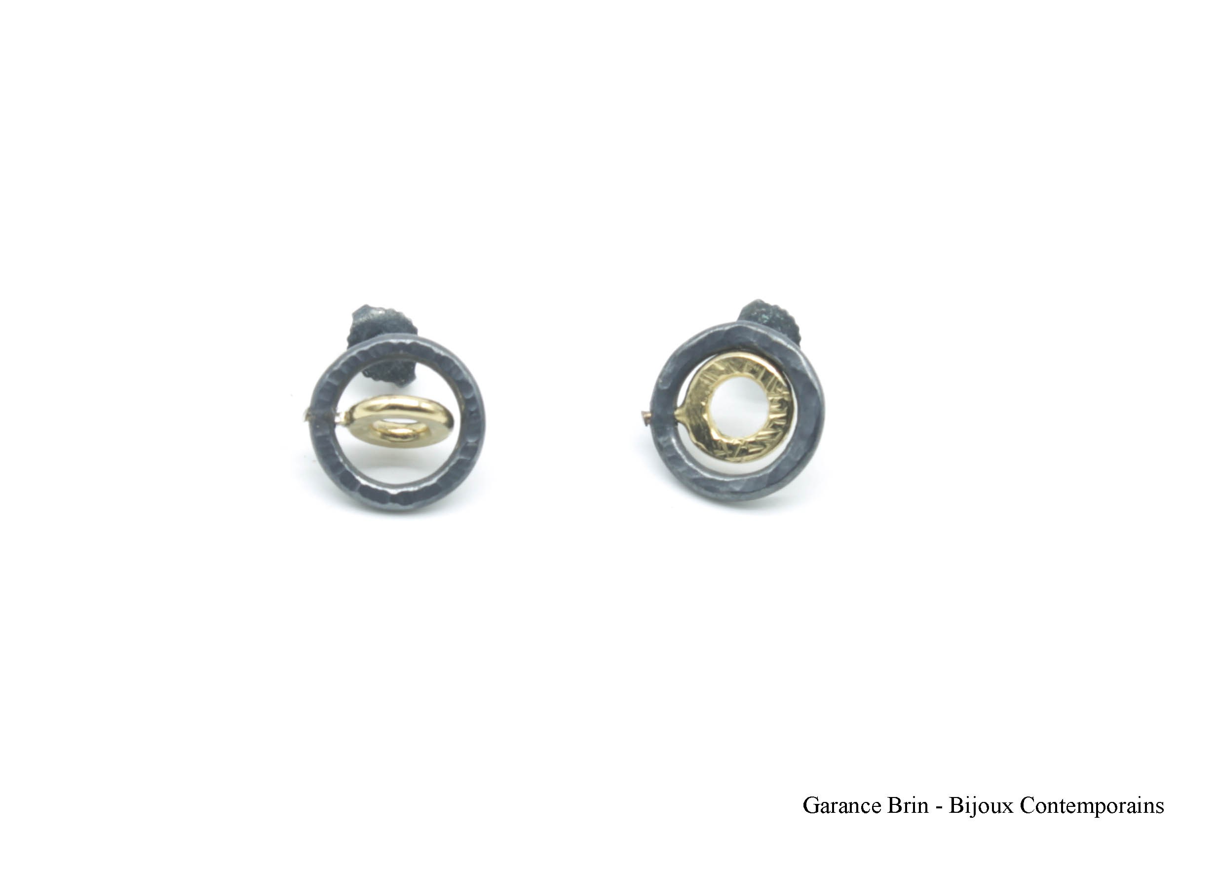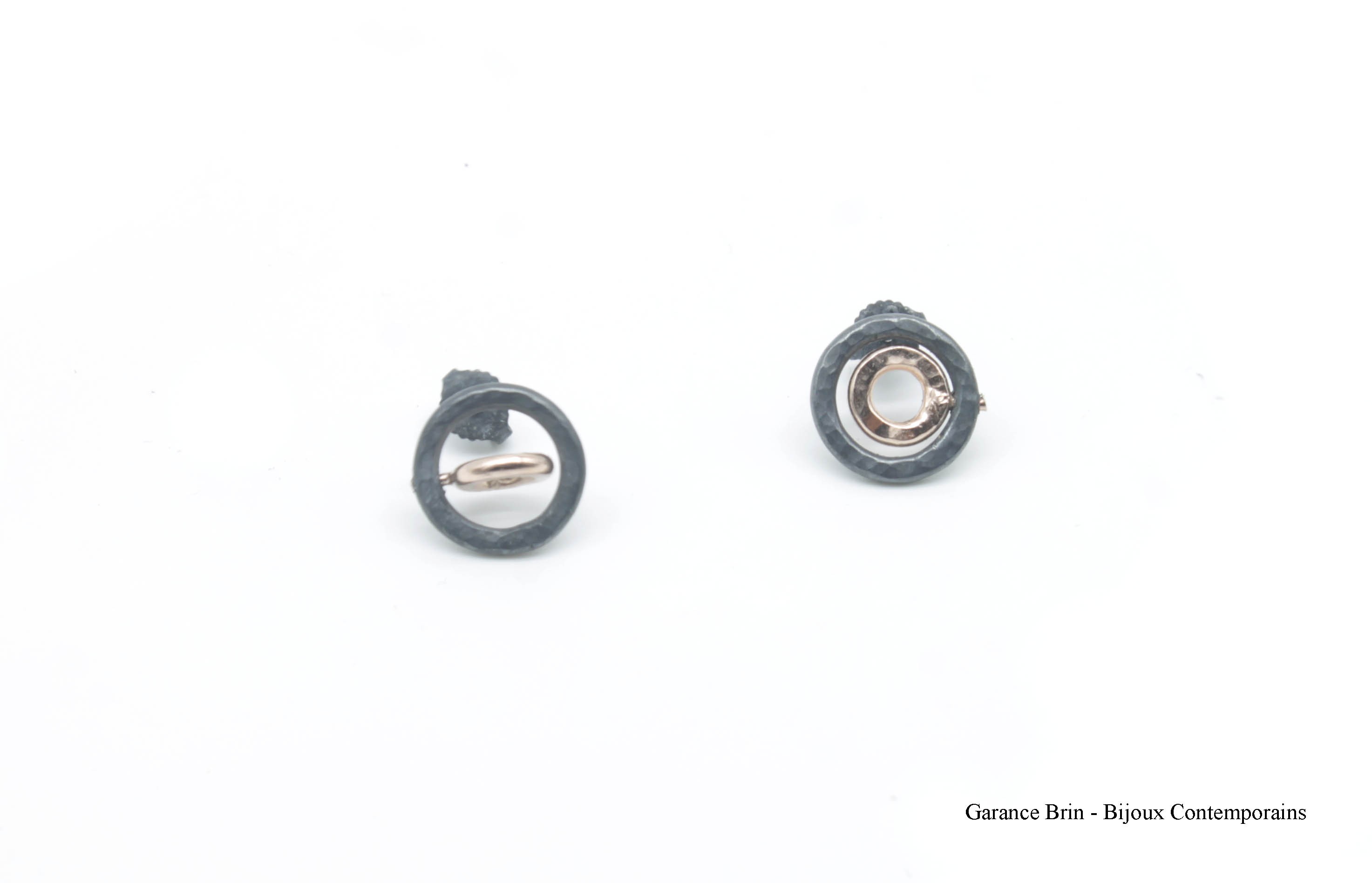 Ces boucles d’oreilles sont fabriquées entièrement à la main en argent 925 oxydé et vermeil rose ou jaune avec une finition polie. L’oxydation peut se patiner avec le temps.