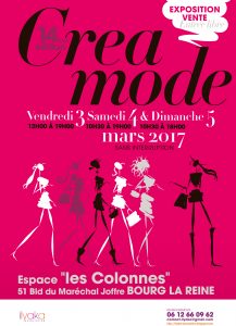 J’expose au salon Créa Mode à Bourg la Reine du vendredi 3 mars au dimanche 5 mars.